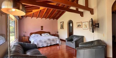 Casa independiente para uso residencial en arriendo en sector tranquilo, campestre y poco flujo vehicular. Piso en madera, dos niveles, chimenea, sala y comedor independiente, estudio, estar de tv, biblioteca, 3 alcobas con baño en la principal, cocina integral abierta, alcoba y baño de servicio, balcon, terraza, jardin y parqueaderos independientes cubiertos. Cuenta con porton electrico, circuito cerrado de tv y alarma. *Inmuebles sujetos a verificación de disponibilidad.*
