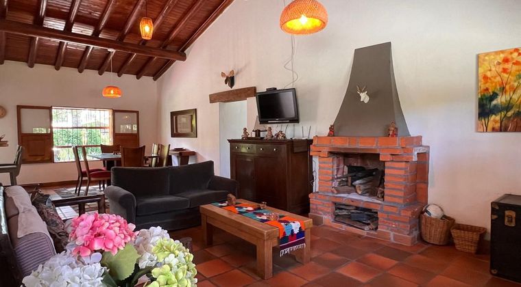 Casafinca amoblado independiente para arriendo. Ubicada en un sector tranquilo, campestre, con conexion desde via principal y rutas de transporte publico. Cuenta con piso en ceramica, espacio de area social con chimenea natural, salacomedor y cocina integral abierta estilo lineal y con barra tipo americano. Tiene 5 alcobas, vestier y baño en la principal, ademas baño social. Terraza con acceso al jardin, lote de gran extension con area aproximada de 6.200metros; zona de parqueo dentro de la casa. Acceso con porton electrico, tiene alarma y circuito cerrado de tv Inmuebles sujetos a verificación de disponibilidad