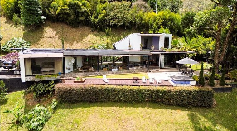 Moderna casa con menos de 5 años de construcción, ubicada en un lote de aproximadamente 4.000 m² y con un área construida de 412 m². • Distribución: 3 dormitorios, 5 baños, habitación de servicio con cama, cocina integral, gimnasio. • Espacios exteriores: cascada, jacuzzi acondicionado como piscina de agua fría, amplia entrada para autos, caseta para perro y posibilidad de construir una segunda minicasa en la propiedad. • Atributos especiales: ventanales de piso a techo que rodean la casa, vista directa a la ciudad y espectaculares atardeceres. Opciones de negocio: • Arriendo amoblada: $38.000.000 mensuales (mínimo 6 meses – máximo 12 meses). • Venta: $5.999.000.000