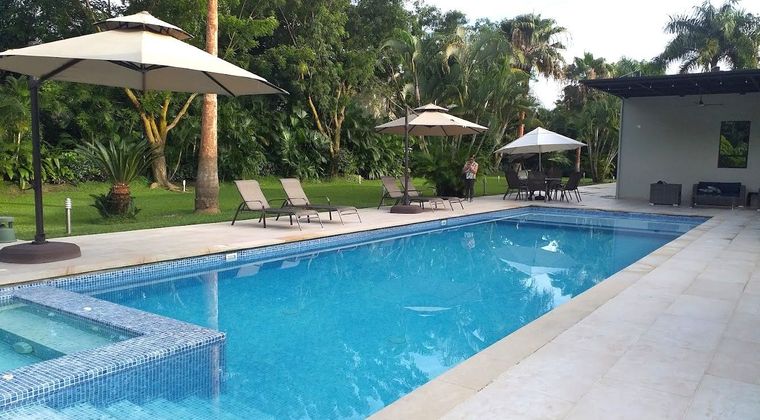 Exclusiva casa de lujo en Anapoima, ubicada en uno de los mejores condominios del sector, con un magnífico lote de 3.400 m² y 980 m² construidos. Esta imponente propiedad de dos niveles ofrece en su primer piso una elegante sala y comedor en ambientes independientes, amplia terraza con zona BBQ y Teppanyaki, sala externa integrada a la piscina y jacuzzi, cocina integral de alta gama, zona de servicio con habitación y baño privado y baño social. En la zona privada encontrarás cinco cómodas habitaciones con baño, destacándose la principal por su espectacular terraza. Con diseño moderno, acabados premium y amplias zonas verdes, esta casa redefine el descanso y la calidad de vida. Disfruta de piscina, jacuzzi, pérgolas automatizadas, iluminación exterior, planta eléctrica, dos tanques de 14 m³ y sistema de riego. El condominio ofrece además canchas de tenis, fútbol cinco, salón de eventos, juegos infantiles, mini golf y senderos ecológicos. Tu sueño de vivir en el paraíso, hecho realidad.
