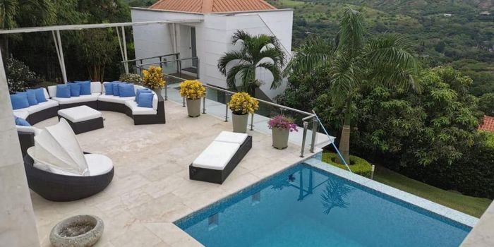 Lujosa casa campestre ubicada en condominio exclusivo en el norte de Cali, en el sector de Arroyohondo.. Encontramos esta casa con 1800 m2 de lote y 800 m2 construidos en dos niveles, pisos de marmol, cinco habitaciones cada una con baño, cuarto de servicio y cuarto de escoltas tambien cada uno con baño. Consta de oficina, estudio, sala en recibidor, sala social, comedor, cocina integral con meson en marmol, sala de cine, amplios espacios y terrazas con la vista mas espectacular a la ciudad. Asi mismo podras disfrutar del gimnasio, zonas verdes, jacuzzi, turco, piscina, solarium, cancha multiple, estacionamiento para mas de diez vehiculos.