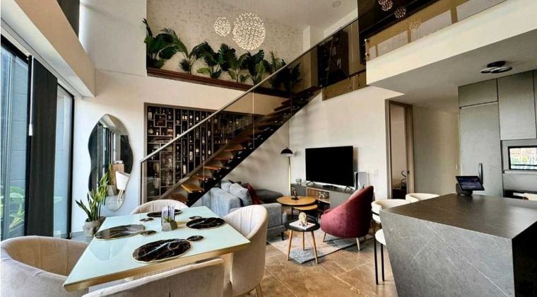 Código. nueve ocho cero cuatro tres dos nueve . Este hermoso dúplex en venta se encuentra ubicado en una zona privilegiada de la ciudad de medellín , Colombia. Con una excelente ubicación, este inmueble se encuentra en una zona tranquila y residencial, con fácil acceso a centros comerciales, restaurantes, colegios y zonas verdes. Además, cuenta con excelentes vías de acceso pavimentadas, lo que facilita la movilidad y el acceso a diferentes puntos de la ciudad. El área total de este dúplex es de 140 metros cuadrados, con una construcción de la misma medida y una distribución interna que ofrece comodidad y amplitud en cada uno de sus espacios. En total cuenta con 3 alcobas, cada una con su propio baño completo y clósets integrados, lo que brinda privacidad y confort a cada miembro de la familia. Una de las características más destacadas de este inmueble es su diseño en dos niveles, lo que permite una mejor distribución de los espacios y una sensación de hogar más cálida y acogedora. En el primer nivel se encuentra la cocina integrada, equipada con electrodomésticos modernos y una barra estilo americano, perfecta para disfrutar de desayunos en familia o para preparar sabrosos platillos mientras se comparte con amigos. En el segundo nivel se encuentra una amplia sala de estar con acceso a un hermoso balcón con vista panorámica a la ciudad. También se encuentra un estudio ideal para aquellos que trabajan desde casa o para tener un espacio dedicado a la lectura y el estudio. Además, cuenta con una habitación de servicio para aquellos que deseen tener una empleada doméstica o un lugar extra de almacenamiento. Este dúplex cuenta con acabados de alta calidad y está listo para habitar. Ha sido recientemente renovado y cuenta con pisos laminados y de cerámica, lo que le da un toque moderno y elegante. También cuenta con puertas de seguridad y un sistema de circuito cerrado de televisión para garantizar la seguridad de sus residentes. En