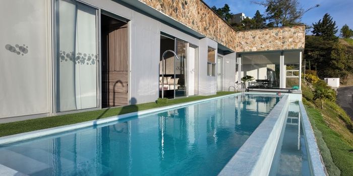 Código. ocho tres tres siete seis ocho uno . Brando & Cia te ofrece esta increible casa al Norte de la ciudad de Medellin, especificamente en Bello, esta hermosa propiedad que se entrega a puerta cerrada tiene un lote de 3.000 M2 y un construcción de 225 M2, para ingresar a la propiedad debes cruzar dos porterias privadas, mas el porton principal de la misma, por lo que se puede asegurar que es un lugar seguro para vivir. La casa cuenta con tres amplias habitaciones, las tres abiertas hacia el area social y la piscina, cuenta con baño en la habitación principal, baño auxiliar y zona de ropas independiente, cocina integral abierta hacia la zona social interna y externa de la casa. La zona social externa cuenta con un jacuzzi climatizado y una piscina de 16 mts de largo y 3 de ancho, ademas cuenta con un espacio adicional, el cual cuenta con cocineta, baño y gimnasio. En conclusión si buscas una casa al norte de la ciudad de Medellin esta es una opcion perfecta para ti! Contactanos!