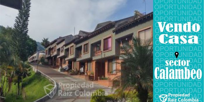 En venta Hermosa Casa de tres niveles en conjunto residencial en medio de la naturaleza y aire puro. Ubicado en el exclusivo sector de Calambeo, con localización privilegiada por su cercanía con las montañas y vistas hacia la ciudad. La propiedad consta de sala, comedor, 5 alcobas con closets (alcoba principal con baño), 4 baños, estudio, cocina integral, zona de lavandería, semi terraza (con vista panorámica), solar, balcones (2) y garaje. Los residentes del conjunto disfrutan de zonas sociales como piscina, cancha múltiple, parque infantil, amplias zonas verdes y vigilancia privada 24 H.