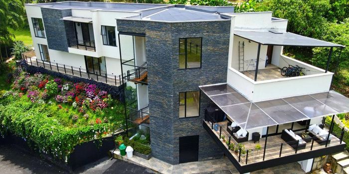 CM-Venta de Finca Campestre en Caldas, Antioquia Con un terreno de 1.500 metros cuadrados y una construcción de 520 metros cuadrados, Espectacular finca campestre ubicada en Caldas, Antioquia, un espacio perfecto para disfrutar de la tranquilidad y belleza natural que ofrece la región. esta propiedad está diseñada para brindar comodidad y lujo en cada rincón. Características de la Propiedad: 5 Habitaciones: Cada una con baño privado; 3 de ellas cuentan con Vestier y 2 con closet, Baño Social, Sala de Televisión, Cuarto de Linos, 9 Parqueaderos, 3 Perreras, Cuarto Útil, Plan para Cancha (Espacio destinado para la construcción de una cancha, adaptable a tus necesidades) Cocina Integral: Moderna y equipada, lista para disfrutar de la gastronomía. Ventanería Monumental: Ventanas de gran tamaño que ofrecen vistas impresionantes y abundante luz natural. Independiente (no admon) predial 1 mllon trimestral