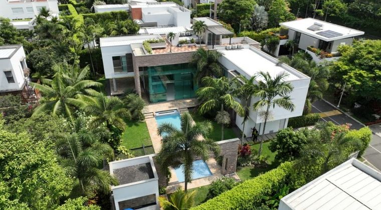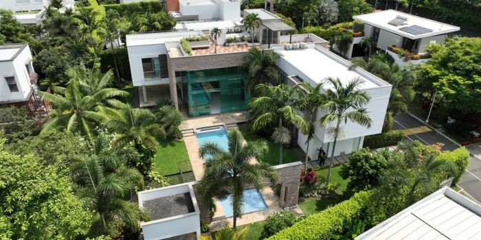 En venta espectacular casa de estilo contemporáneo y minimalista ubicada en exclusivo Condominio de Pance. Diseñada para integrarse armoniosamente con el entorno natural, esta propiedad aprovecha el desnivel del terreno para ofrecer vistas excepcionales y espacios funcionales. Cuenta con un lote de 1.408 m² y una construcción de 699 m² distribuidos en tres niveles. En el primer piso se encuentra el garaje cubierto para 3 vehículos más espacio exterior para 3 adicionales, zona de piscina con baño, estudio, baño social, sala de cine en casa, sala, comedor, amplia terraza social, cocina integral con alacena, zona de ropas, alcoba de servicio con baño, zona BBQ semicubierta con cocineta y extensas zonas verdes. El segundo nivel dispone de hall de alcobas, sala de estar, cuatro habitaciones todas con baño, vestier y balcón (incluyendo la principal con tina), y sala de juegos. En el tercer piso se encuentra una amplia terraza. La casa tiene acabados de lujo como pisos en porcelanato, baños con mobiliario importado y mesones en mármol, cocina con mesón de mármol y electrodomésticos empotrados. Dispone además de shut de ropa, ascensor para comidas, iluminación LED, espejos de agua interiores y exteriores, sistema de alarma, cámaras de seguridad y excelente iluminación y ventilación natural. El condominio ofrece vigilancia 24/7, citófono, piscina, salón social en dos niveles, sauna, turco, jacuzzi y una administración mensual de aproximadamente $2.020.000. Una propiedad que combina elegancia, funcionalidad y confort en uno de los sectores más exclusivos del sur de Cali.