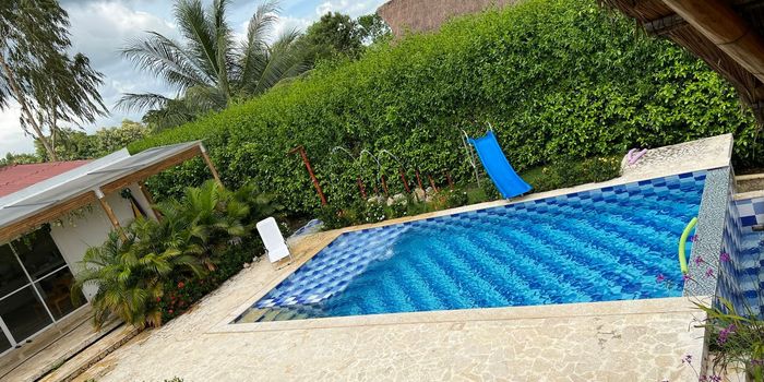 Casa de Ensueño en Venta en Turbaco. Tu Refugio Ideal para Vivir o Vacacionar. ¿Buscas una casa amplia, equipada y lista para disfrutar en familia o con amigos? Esta espectacular propiedad en Turbaco es perfecta para ti. Ubicada en una zona tranquila y de fácil acceso, cuenta con todas las comodidades para vivir o invertir en una experiencia tipo resort privado. Características del inmueble: 4 habitaciones confortables, 3 baños bien distribuidos, Cocina amplia y funcional Terraza y kiosco con mesa ideal para reuniones y momentos especiales, Piscina con zona de playa, chorros decorativos y resbaladero para diversión garantizada, Se entrega completamente equipada con: Aires acondicionados en sala y habitaciones Cortinas Nevera y estufa Juego de sala y comedor 4 juegos de camas dobles y sofá cama Extras que la hacen única: Pozo de agua natural con motobomba y tanque elevado Cancha de fútbol Mesa de ping pon, juego de rana Zona BBQ Internet de banda ancha Todo lo que necesitas para vivir cómodamente, disfrutar de fines de semana inolvidables o incluso generar ingresos como casa vacacional.