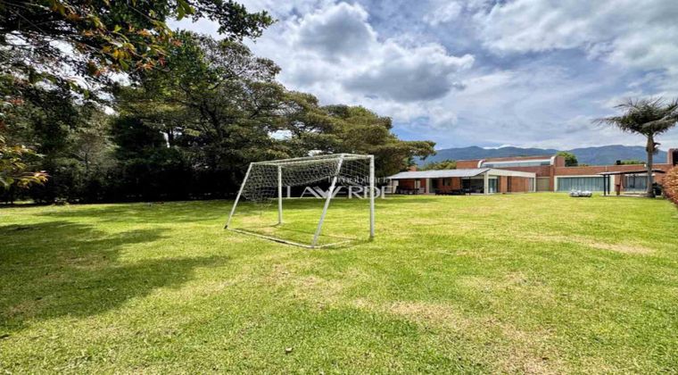 Codigo 18652. ¡Te presentamos esta espectacular Obra de Arte que cuenta con uno de los mejores lotes de la hacienda! Esta casa consta de 350m2 construidos habitables + 80m2 de terrazas, al ingresar a la propiedad se ubica la zona de parqueadero que alberga un espacio cubierto para dos vehículos y 6 o más descubiertos con una entrada de servicio que conduce a la cocina. Tras su puerta principal se aprecia la distribución de la casa donde permite tener toda la zona privada a parte de la zona social.Esta se conforma por un espacio cómodo de sala con chimenea, zona de tv, comedor amplio, baño social, cocina integral cerrada con barra americana, espacio de comedor auxiliar y una terraza, adicionalmente cuenta con zona de lavandería y cuarto y baño de servicio independiente.En cuanto a su zona privada consta de 3 habitaciones auxiliares con vestier y baño privado, sala de tv y la generosa habitación principal con terraza, amplio vestier y baño privado.¡Agenda tu visita ahora mismo y conoce esta excelente oportunidad de vivienda e inversión!