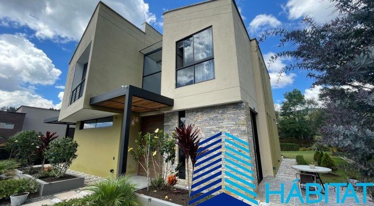 Vende Casa campestre de dos Niveles, en Guarne a 10 min del pueblo y a 300 metros de la autopista Medellín - Bogotá . Unidad cerrada , Lote de 2300 metros , casa de 329 metros , 280 internos , 4 habitaciones más servicio , dos de ellas con Vestier , 5 baños , cocina en isla hermosa , zona BBQ , jardín trasero , riachuelo interno ,zonas verdes,1 balcón, piso en porcelanato en el primer piso y en segundo piso baldosa PDF térmica, garaje doble , parqueadero para 12 carros . Oficina independiente, doble altura , luz natural en todos los ambientes . Alcantarillado y acueducto . Impecable .2 años de construida , Hermoso ambiente campestre