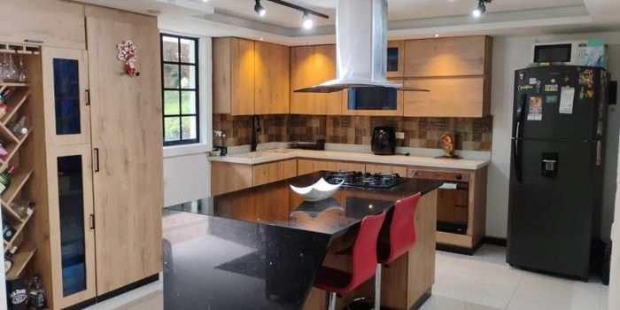 Area lote 2.000 mts, area construida 400 mts en 3 niveles, 4 alcobas, 4 baños, sala comedor, cocina integral, estar, zona de ropas, terraza, parqueadero cubierto para 3 vehiculos.