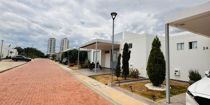 Casa de una planta, Medianera, Distribuida en Sala, Comedor, Cocina integral, Zona de Lavandería, Piscina, 3 Habitaciones, la principal con baño y closet, baño social y baño auxiliar. El conjunto cuenta con portería 24 horas, piscina para niños y adultos, parque infantil, gimnasio, cancha múltiple, zonas verdes.