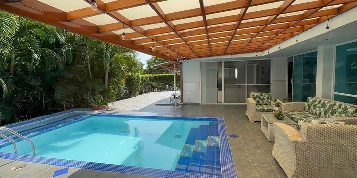 Venta de Casa en La Morada Casa de 1 piso Sala Comedor Cocina abierta 3 habitaciónes con vestier y baño privado Zona de oficios Alcoba de Servicio Parqueadero para 5 carros dos cubiertos Terraza Zona verde amplia Área del lote 638 mtrs2 cortinas Valor de Venta 960 mlls negociables