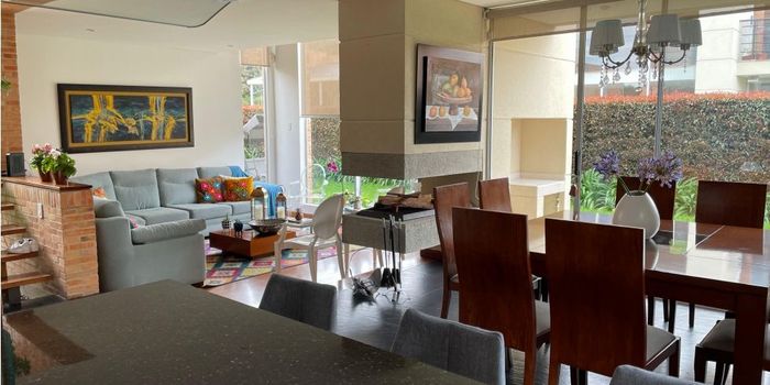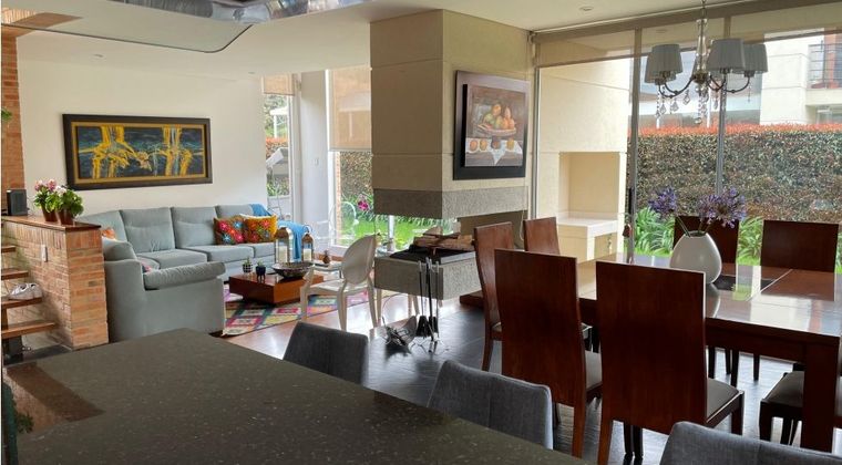 Hermosa casa campestre Ubicada en la vereda Fonqueta en Chia Lote de 440 mts, área construida 295mts Esquinera, con amplia zona verde al rededor 4 parqueaderos, bicicletero, deposito grande, cuarto y baño de servicio,cuatro habitaciones tres con baños independientes, balcón en tres alcobas, la principal con closet y wlaking closet, hermoso baño con luz natural, doble lavamanos terminado en piedra muñeca,en la principal como en las auxiliares. Sala de estar con estudio, Cocina abierta, comedor y sala con chimenea. Muy iluminada. El condominio tiene club house piscina climatizada, turco, sauna, jacuzzi, parque infantil.