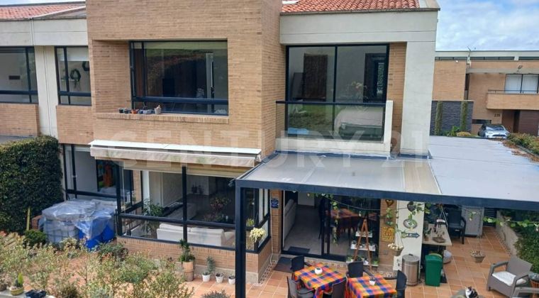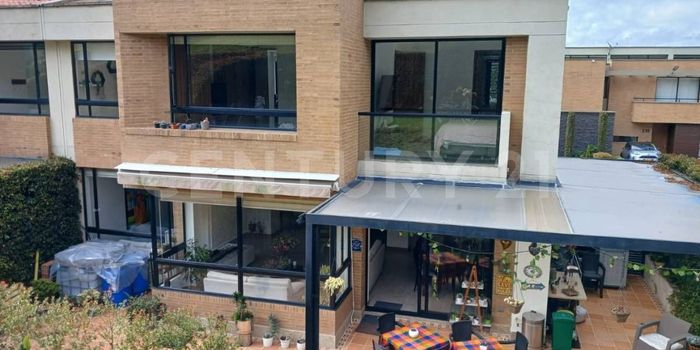 1. Dos niveles 2. Tres habitaciones con baño privado 3. La alcoba principal con Vestier, balcón y baño con lavamanos doble 4. Habitación de servicio con baño 5. Estudio primer piso 6. Sala Auxiliar primer piso 7. Sala-Comedor con chimenea 8. Cocina abierta completamente dotada 9. Zona de lavandería independiente, dos calentadores a gas, depósito 10. Sala auxiliar segundo piso con balcón 11. Área lote: 393 m2 12. Área construida: 208 m2 13. Área pérgolas: 35 m2 14. Área patio: 31 m2 15. Parqueaderos: 4