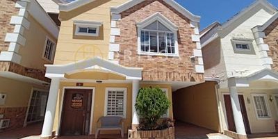 Hermosa casa de 3 niveles, área 230 m2, cuenta con 4 habitaciones con closet, habitación principal con baño privado y jacuzzi, 2 baños auxiliares, sala comedor, cocina integral, zona de ropas, bbq, hall de tv, piso en cerámica, balcón, salón social, gimnasio, parque infantil, cancha múltiple, piscina, sauna y turco, bbq, senderos, parque infantil, parqueadero doble, vigilancia las 24 horas del día.