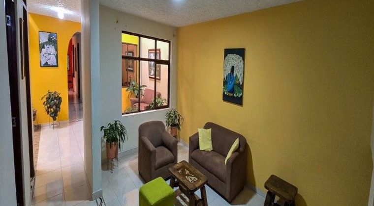 CASA EN VENTA BARRIO LAS AMERICAS Propiedad ideal para uso bifamiliar, institucional o comercial, gracias a sus dos pisos totalmente independientes. Características principales: - 7,15 m de frente x 35 m de fondo (lote amplio). - Área construida: 199 m² en el primer piso y 186 m² en el segundo piso. - Primer piso: 3 alcobas, garaje/local comercial, sala social, comedor, cocina, cuarto de servicio, 2 baños y espacio de antesala. - Segundo piso: 4 alcobas, salón de eventos, comedor, cocina y 2 baños. Estrato 3 – excelente ubicación, cerca a servicios, colegios y zonas comerciales.