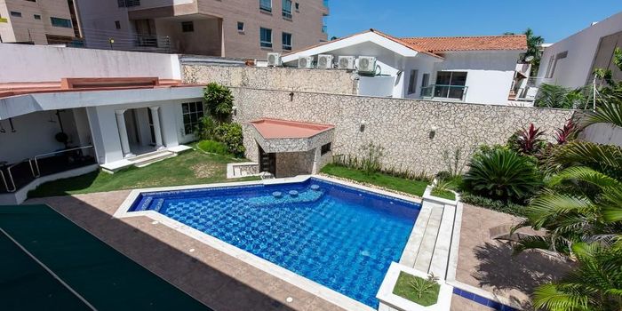Dream Homes by VIVESco les presenta esta original casa con un estilo atemporal en el barrio El Golf, llena de luz natural, mucha vegetación y cascadas de agua. Esta casa tiene varios niveles y doble altura con un imponente domo en el lobby, ventanales de piso a techo con jardines interiores que crean un hábitat muy especial. Cuenta con recibo, baño social, dos salas, salón de entretenimiento con acceso directo a la zona de piscina, comedor, cocina con comedor auxiliar también con acceso a la piscina, zona de lavandería, alcoba y dos baños de servicio. La piscina tiene Acqua bar para disfrutar de tus bebidas, jacuzzi, sauna, gimnasio, ducha y baño. En el segundo piso, cuatro alcobas con baño, tres de de ellas con balcón hacia el jardín y vista a la piscina. En el tercer piso una terraza mirador hacia la calle. Cómoda cochera para dos vehículos bajo techo y dos descubiertos. Si quieres vivir a plenitud con tu familia, te recomendamos esta casa de diseño.