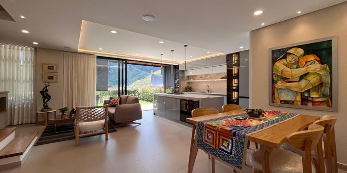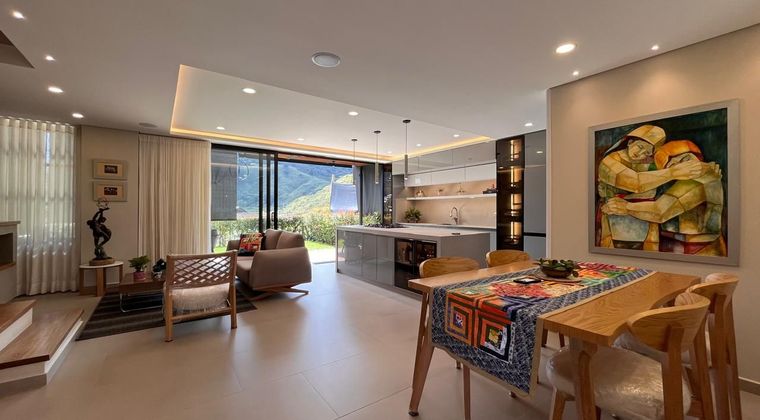 Casa en venta en unidad cerrada ubicada en sector de crecimiento y desarrollo urbanístico cercano a la cabecera municipal, de fácil acceso desde vía principal, entorno campestre, tranquilo y poco flujo vehicular y servicios complementarios del sector. Cuenta con un lote de 169 M2, 2 niveles, piso en cerámica, chimenea, sala comedor, estar de tv, 2 alcobas con vestier y baño en la principal, baño en cada alcoba, baño social, con un total de 4 baños, cocina integral abierta tipo americano, zona de ropas, balcón, terraza, jardín, 2 útiles y parqueaderos paralelos cubiertos. Conjunto cerrado con piscina, gimnasio, salón social, parques infantiles, placa polideportiva, zonas verdes, vigilancia y portería 24 horas, citófono y circuito cerrado de TV. Inmuebles sujetos a verificación de disponibilidad.
