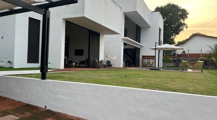Se vende en Honda Tolima espectacular casa campestre con casa de huéspedes, lote 1.644m2 (55 de frente por 35 de fondo), piscina de 45m2, una bodega, un cuarto de maquinas, un cuarto de servicio, dos tanques de reserva, hidroflow para bombeo, 4 parqueaderos en total, cuenta con servicios de Luz, agua y gas natural. BBQ con asador a gas, barra, counter, techado y comedor, zonas verdes alrededor de la construcción, incluye una parte en montaña. Ubicación a A 1 minuto de la UCI y Clínica de Honda, a 5 minutos del centro histórico y a 2 minutos del batallón de infantería Patriotas. CASA PRINCIPAL: Área de 344m2 de dos niveles. Primer Nivel consta de Sala, comedor, baño social, cocina, despensa y zona de lavandería. Segundo Nivel consta de habitación principal con baño y sala de estar, 2 habitaciones auxiliares, baño auxiliar, hall de alcobas con mirador. Todas las habitaciones con balcón. CASA DE HUESPEDES: Área de 110m2 de un solo nivel, consta de sala, comedor, baño social, cocina, habitación apta para cama king.