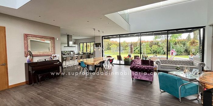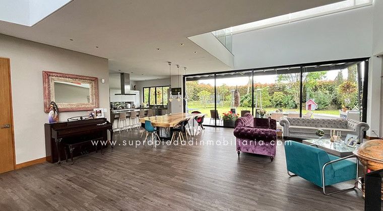 Casa en venta, Alto de las Palmas, Envigado. Exclusiva casa de 436 m² construidos en lote propio de 1.603 m², ubicada en una de las parcelaciones más prestigiosas del sector. Distribución perfecta en dos niveles: primer piso con sala y comedor independientes, cocina integral con isla, estudio/oficina, 1 habitación con baño y vestier, medio baño social, habitación de servicio con baño, zona BBQ, deck comedor exterior, huerta, amplios jardines y 2 cuartos útiles. Segundo piso dedicado al descanso con 3 amplias habitaciones, cada una con baño privado y vestier; la principal con balcón y vista espectacular. Incluye 2 parqueaderos cubiertos + 4 descubiertos. La parcelación ofrece gimnasio, turco, salón social, 2 canchas de tenis, microfútbol, juegos infantiles, pista de trote y exuberantes zonas verdes. A solo 25 minutos de Medellín y minutos del Shopping Le Mont y Viva Palmas. ¡Vive rodeado de naturaleza, lujo y exclusividad! ¡Agenda tu visita ahora! SE ENTREGA SIN AMOBLAR