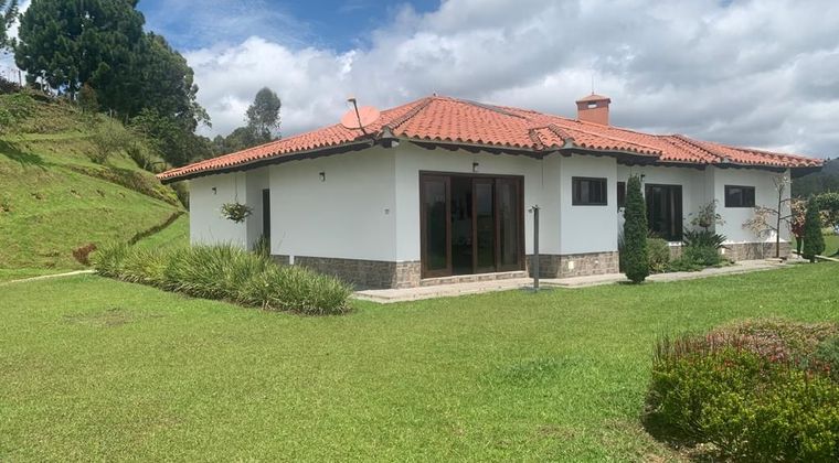 4 habitaciones con vestier y baño, sala con bar y chimenea, cocina integral, garaje doble cubierto, cuarto útil, estudio, lobby, baño social, zona ropas, cuarto de servicio con baño, alacena, 2 closet de lino, jacuzzi, parque infantil, lago, iluminación solar, cámara de seguridad, empresa vigilancia Ronderos.