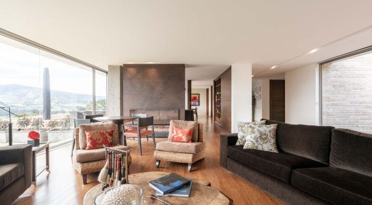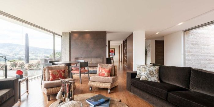 Esta encantadora casa se encuentra situada en medio de verdes jardines donde encontramos parte de un bosque, una quebrada y un precioso lago natural. Moderna en su diseño, la propiedad consta de dos niveles; en la primera encontramos un amplio e iluminado comedor con una imponente vista al valle de sopo; una cocina moderna y abierta con diseño de isla. Todos estos espacios cuentan con acceso a una gran terraza con BBQ que rodea toda la casa. Esta planta se ve ambientada una chimenea natural que brindan calidez a toda el área social. La moderna casa cuenta con 5 habitaciones, cada una de ellas con su baño y Vestier privado. En este piso también encontramos un acogedor estar de televisión que consigue ser un espacio ideal para el recreo y descanso de toda la familia. La propiedad se encuentra ubicada en Guasca, Cundinamarca a pocos kilómetros de Bogotá, zona que se ha desarrollado especialmente para fincas de recreo. ¡Agenda tu cita para visitarla!