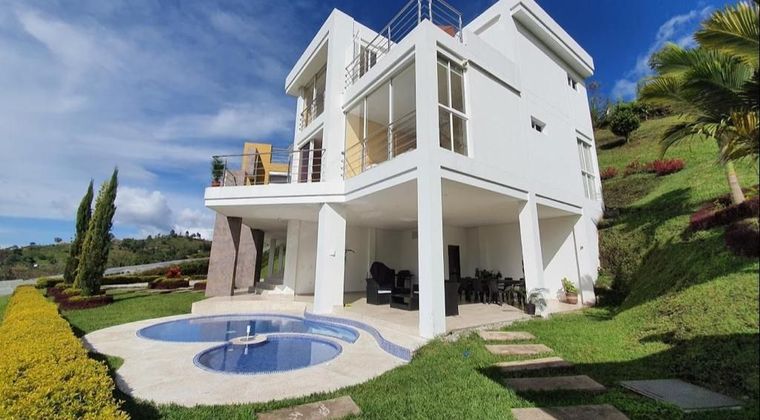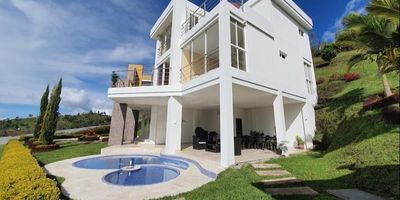 BA- venta de casa de lujo ubicada a 2km del peñol-Antioquia, a 80 metros de la vía principal hacia Guatapé, a 50 minutos del aeropuerto internacional José maría Córdova, al frente de la réplica del viejo peñol. -7 habitaciones, 7 baños. -alcoba principal con amplio baño, dos lavamanos, Vestier y terraza privada. -3 habitaciones con baño privado y closets. -2 habitaciones con closets y un baño completo compartido. -habitación del servicio con closet y baño privado. -3 terrazas, balcones con ventanales. -sala comedor de concepto abierto con una amplia y hermosa cocina con detalles de diseño y amplias alacenas modernas. -zona social con baño completo. -piscina de adultos y niños con hidrojets. -jacuzzi para 12 personas y baño turco. -zona bbq, estufa -cuarto de insumos y herramientas. -parqueadero amplio cubierto para 4 carros y parqueadero descubierto para 8 carros. -espectacular vista hacia el lago. -acceso privado al embalse para navegación. -árboles frutales. -bosque de pinos