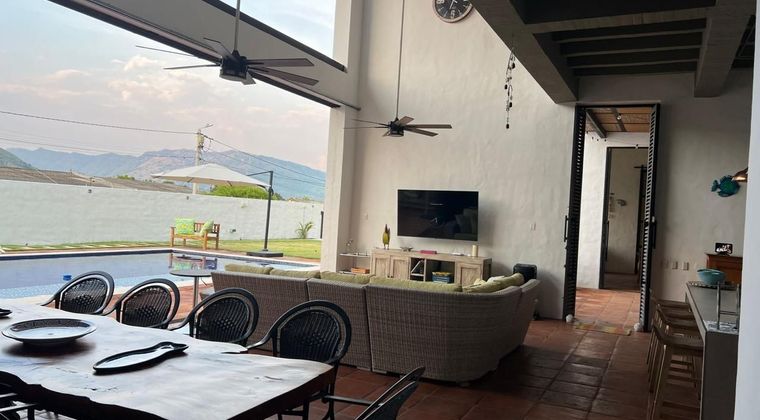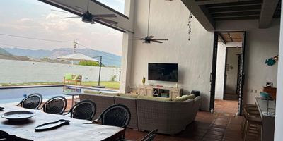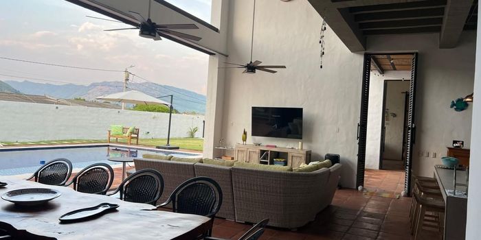 Codigo 18693. Vendo espectacular casa en Honda, Tolima, una oportunidad única en un entorno privilegiado. El predio tiene un área total de 1.644 m² (55 metros de frente por 35 de fondo), con 454 m² construidos y una piscina de 45 m². Clasificado como urbano residencial, cuenta con una antigüedad de apenas cuatro años. La propiedad incluye una casa principal con tres habitaciones amobladas, tres baños, impresionante zona social con doble altura de 10 metros, cocina con isla, despensa y zona de lavandería; además de una casa de huéspedes con una habitación, baño, cocina con isla y área social. Complementan el conjunto una habitación de servicio con baño, cuarto de máquinas, bodega, tarima, zona BBQ con comedor y bar, gimnasio, cuatro parqueaderos, dos tanques de reserva y sistema de bombeo Hidroflow. Está equipada completamente con camas, menaje, horno, nevera, lavavajillas, lavadora y secadora a gas, lista para habitar sin preocupaciones. Su ubicación es estratégica: a un minuto de la UCI y Clínica de Honda, a cinco minutos del centro histórico y a dos minutos del Batallón de Infantería Patriotas. Honda es una ciudad con gran valor histórico y cultural, rodeada de naturaleza, con clima cálido todo el año y una comunidad acogedora. Además, ofrece alto potencial de valorización, demanda turística constante y nuevos desarrollos residenciales. Ideal para quienes buscan exclusividad, confort e inversión.