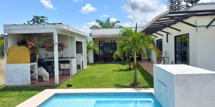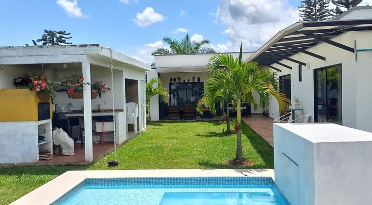 CASA CAMPESTRE JAMUNDI AREA LOTE 1312 m2 AREA COSTRUIDA 350 M2 INCLUIDA TERRAZAS, PORTERIA VIGILADA, ZONA SOCIAL, CANCHA DE TENIS, BALONSEXTO, PISCINA JACUZZI TURCO, JUEGOS INFANTILES, 3 ALCOBAS CADA UNA CON BAÑO PRIVADO Y CLOSET, COCINA, ZONA DE OFICIOS CON PATIO DE ROPAS, CUARTO DE SERVICO CON BAÑO, SALA COMEDOR, ESTUDIO, BAÑO SOCIAL, ZONA DE ASADOS CON BAÑO, JACUZZI, GARAJE 3 CARROS, APARTAESTUDIO INDEPENDIENTE EN SEGUNDO PISO, ADMINISTRACION $421.000 PRECIO $950.000.000 NEGOCIABLES **********
