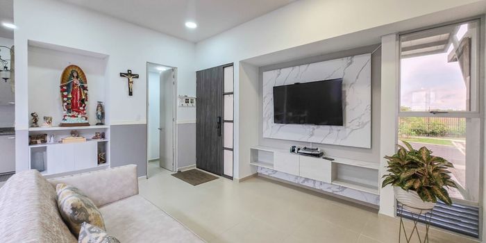 Casa en venta en Galicia en unidad cerrada, cerca a supermercados de cadena, rutas de transporte público y servicios complementarios de la zona. Cuenta con salacomedor, pisos en cerámica, estudio, tres habitaciones con closet, tres baños, cocina integral tipo americano en mesón de granito, estufa, calentador a gas, zona de ropas, patio y antejardín. La unidad posee de dos parqueaderos, piscina, gimnasio, salón comunal, parques infantiles, placa polideportiva y zonas verdes. Además cuenta con circuito cerrado de tv, vigilancia y portería las 24 horas. Inmueble sujeto a verificación de disponibilidad.