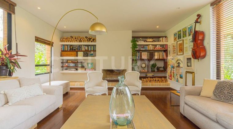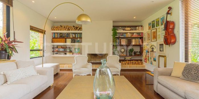 Esta espectacular casa,se encuentra ubicada en el conjunto Refugio del Valle, en la calera. Al ingresar a la casa, nos recibe un espacioso e iluminado hall en el primerpiso, que nos conduce a la sala, la cual cuenta con ventanales piso a techo y acceso a la terraza y jardines privados de la misma. La sala es muy moderna e iluninada y cuenta con chimenea a gas. Independiente encontramos el comedor que tambien tiene ventanales piso a techo y acceso a la terraza, junto a esta se encuentra la cocina que es moderna y abierta, de muy buen tamaño, que se integra a la perfección al comedor. Saliendo por la cocina, encontramos un corredor que nos lleva de nuevo al hall de entrada donde se encuentran las escaleras para subir al segundo piso, El baño social, que es muy amplio y entrada a la zona de lavanderia, que es generosa en sus espacios y con puerta de acceso a un lado de la casa y el cuarto de servicio que cuenta cn baño en suite y closet. El segundo piso de la casa cuenta con tres habitaciones, family room y estudio independiente. Las alcobas auxiliares son de buen tamaño y muy iluminadas una de ellas cuenta con baño en suite, la otra tiene baño fuera de la habitacion, que sirve para el espacioso family room y también para el estudio independiente. La alcoba principal es de gran tamaño, con un balcon privado, walk in closet y Family room. Esta magnifica propiedad se complementa con 4 parqueaderos. El conjunto cuenta con Clubhouse muy completo con piscina,gimnasio totalmente dotado, cafeteria, sauna y turco, canchas de squash,teatrino y dos salones comunales.