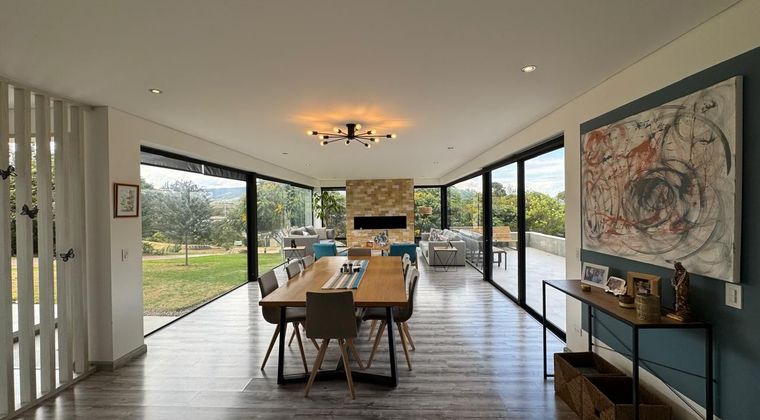 Codigo 19717. Viva la exclusividad y el confort en esta lujosa propiedad con vistas panorámicas a las montañas de La Calera.Características Principales: Lote: 1.379m², Área construida: 360m². Gran parte del lote es plano, ideal para disfrutar con familia y amigos.Espacios sociales: Sala con chimenea, Comedor amplio, Cocina abierta moderna con electrodomésticos AAA, Zona privada: Habitación principal con vestier cerrado, baño privado y vista panorámica.Tres habitaciones auxiliares con vestier y baño privado.Family room para momentos en familia.Espacios adicionales: Estudio cerrado con vistas únicas, Zona de ropas amplia, Cuarto y baño de servicio, Zonas exteriores con sala, comedor y área BBQ.Parqueaderos: Dos cubiertos y amplios espacios descubiertos.Ventajas del Conjunto Residencial Macadamia del Río:Club House: Zona húmeda con sauna, turco y jacuzzi. Cancha de tenis de piso duro, Gimnasio completamente dotado, Salón social ideal para eventos.Próximamente: 9 hoyos de golf.Entorno natural:Senderos ecológicos para caminatas, amplias zonas verdes y aire puro. Beneficios de la Ubicación en La Calera: A solo 30-40 minutos de Bogotá. Perfecto para quienes buscan equilibrio entre la tranquilidad del campo y la cercanía a la ciudad.¡No pierda la oportunidad de vivir en un entorno natural con todas las comodidades!