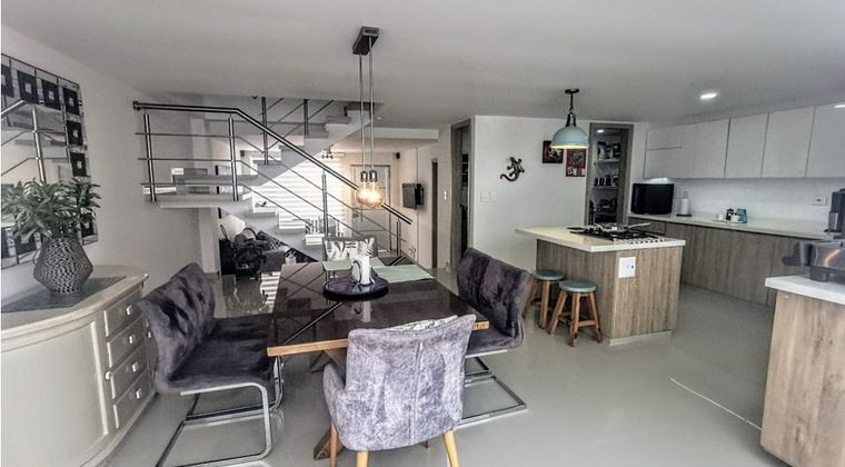 Hermosa casa ubicada en conjunto cerrado de dos niveles. En el primer nivel se encuentra la zona social: sala-comedor, cocina integral y baño social. En el segundo nivel están las tres habitaciones; la principal cuenta con baño, vestier y balcón. Las otras dos habitaciones comparten un baño de alcobas. También hay un espacio destinado para escritorio y biblioteca, además de una amplia despensa. La casa tiene acabados modernos y un patio amplio con techo corredizo.