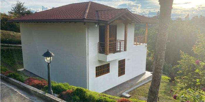 Te presentamos esta soñada Casa campestre de 188MT y un terreno de 3.500MT, en la vereda la esperanza, Marinilla. Un sector con una vista espectacular rodeada de naturaleza. Esta casa cuenta con 2 niveles, distribuidos en 4 habitaciones con closet, 3 baños, una sala con chimenea la cual hace de este espacio sin duda muy acogedor, comedor independiente, zona de ropas, y una cocina integral con meson en Quartzon que la hace ver muy moderna. Ademas tiene un corredor alrededor de la casa en el cual podras disfrutar de una vista 360 a montañas y arboles frutales, porton independiente, acceso avimentado y un kiosco para parqueo. Esta propiedad es sin duda lo que estas buscando vivir en un lugar campestre con las comodidades de una casa que ofrece todas las comodidas, y lo mejor cercana a autopista Medellin bogota. Contactanos para mayor información..