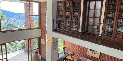 Vive el Lujo y la Arquitectura en la Ciudad Con una arquitectura imponente y atemporal, esta propiedad de 750 m² construidos sobre un amplio lote se convierte en una joya exclusiva para quienes buscan diseño, amplitud y confort en una de las zonas más privilegiadas de Medellín. -Características principales • Diseño arquitectónico: obra del arquitecto Santiago Caicedo, destacada en revistas especializadas por su estilo único y nivel de detalle. • Materiales y acabados: piedra pizarra negra en zonas de tráfico, madera en habitaciones y áreas sociales, techos en madera zapán y carpintería fina que resalta cada espacio. -Distribución de los espacios • Primer nivel: • Hall de entrada • Garaje cubierto • Cocina con despensa • Comedor y sala con chimenea • Estudio privado • Accesos directos a jardines y áreas exteriores • Nivel inferior: • Zona de servicio y cuarto de ropas • Habitación de servicio con baño • Taller de carpintería • Apartamento independiente (con baño y cocineta) • Jardines internos y accesos múltiples • Segundo piso: • 4 habitaciones principales, cada una con baño privado • Estudio con balcón y baño (puede usarse como 5ª alcoba) • Biblioteca • Alcoba principal con jacuzzi, vestier y terraza privada -Espacios destacados • Patio interior y jardines que iluminan y refrescan naturalmente los ambientes • Áreas sociales con doble altura y ventanales con vista verde • Cocina en granito y madera con isla central, perfecta para la vida familiar •