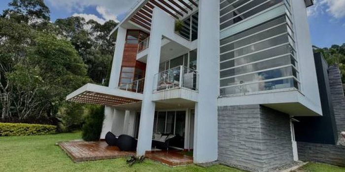 Esta impresionante casa de 3 niveles, con 450 m² construidos y 1950 m² de lote, con un diseño arquitectonico unico, con grandes espacios y rodeada de naturaleza. Distribución: Primer nivel: Sala, comedor, cocina, zona de lavandería y habitación del servicio. Segundo nivel: Sala de lectura, sala de TV y 2 habitaciones completas con salida al exterior, donde disfrutarás de una hermosa vista a la ciudad y un jacuzzi climatizado. Tercer nivel: Habitación principal con amplios vestieres y baño privado, biblioteca con balcón y una vista imponente de Medellín. con una ubicacion provilegiada en una parcelacion exclusiva y en ecxelente punto cerca de todo.