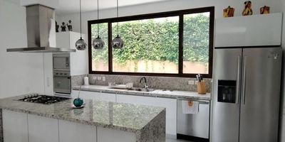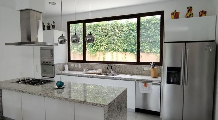 Codigo 14374. Espectacular casa de un nivel con un lote de 900m2 y área construida de 250m2. Con 4 habitaciones, 5 baños, esta propiedad ofrece lujo y comodidad. Disfrute de 5 parqueaderos, sala comedor amplios, cocina abierta y una piscina privada, zona BBQ completamente equipada y amplios jardines. Además, la casa cuenta con una sala comedor exterior cubierta con ventilador. Condominio ofrece un lago, sede social, cancha de golf, gimnasio, zona de masajes, piscina olímpica, SPA, billar y deportes náuticos.
