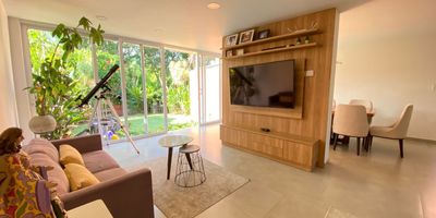 Casa moderna con excelentes acabados, en Condominio Campestre, sector de la Riverita. Consta de lote de 220 m2 y construidos 210 mt2, Amplia Sala, comedor independiente, hall de tv, estudio, Cocina americana, zona de ropas, cuarto del servicio con baño, baño social, zona verde rodeada de árboles y vista preciosa. Segundo nivel: 2 cuartos con baño y vestier, cuarto principal muy espacioso, aíre acondicionado. 3er nivel: Cuarto con baño y preciosa vista. Condominio con excelentes y amplias zonas verdes, piscina, juegos para niños, alta valorización, 2 parqueaderos.