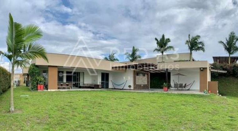 ¿Te gustaría vivir en una moderna casa campestre? Ven y conoce este inmueble de una planta con 400 mt2 construidos en un lote 1.789 mt2. En su moderno interior encontramos espacios amplios e iluminados distribuidos de la siguiente manera. En el frente tenemos parqueadero cubierto para dos carros y cuarto útil. Al ingresar a la casa encontramos sala, baño social, estudio, comedor, cocina con isla y zona de lavandería independiente. En el otro costado de la casa encontramos un hall con mueble de linos que nos lleva hasta las 4 habitaciones cada una con baño y vestier. Además cuentan con cortinera y blackouts. El comedor, la cocina y la habitación principal tienen acceso a la zona social de la casa en donde hay espacio techado para otra sala y comedor, zona de BBQ, Jacuzzi con baño y luego podemos pasar a la zona verde plana en su mayor parte. También tiene salida peatonal hacia el parqueadero. Lo mejor de todo es su excelente ubicación por la vía Condina a tan solo 30 minutos del aeropuerto de la ciudad y 20 minutos del centro de Pereira. Queda cerca de colegios, restaurantes, supermercados, ferreterías y una hermosa vista de los paisajes, fauna y flora del eje cafetero. Colegaje
