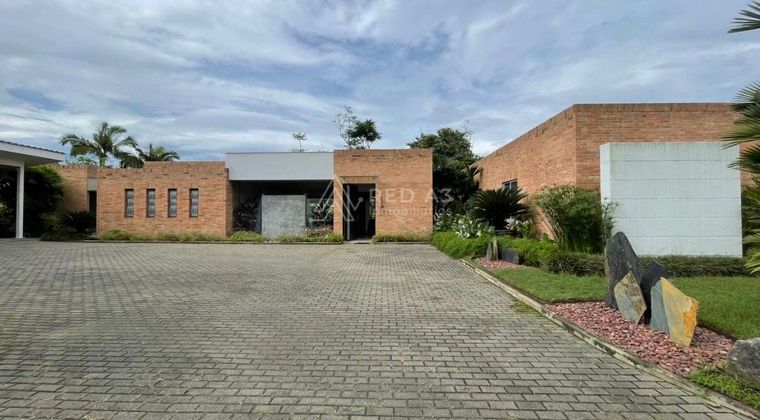 Vivienda ubicada en el sector de Cerritos a 1.1 km de la futura clínica Santa Fé, a 7 kms de Unicentro y a 8 km del Club Campestre de Pereira. De un solo nivel, con un lote de 3.680m2 y un área construida de 476 m2 cuenta con 4 alcobas, 5 baños, 2 salas, 2 comedores, estudio y sala de tv, deck, piscina y parqueaderos cubiertos. Adicional tiene planta eléctrica con suplencia total, piscina con calefacción solar, sistema de alarma, páneles fotovoltaicos, recolección de aguas lluvias y domótica para el sonido y persianas.