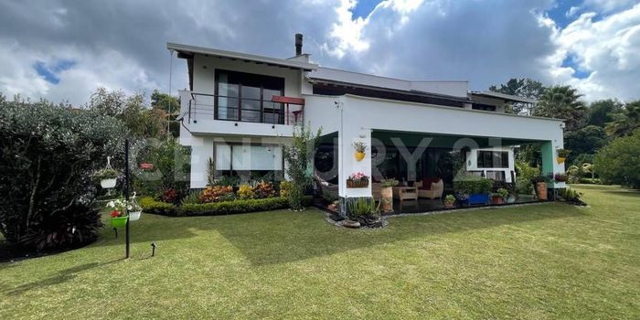 Vendo casa campestre Rionegro vereda El Tablazo,una linda casa, muy amplia con muchos ventanales, lo que permite que sea muy fresca e iluminada, cuenta con 2 niveles, en el primero encontramos un gran salón comedor con chimenea, que conecta a la cocina abierta, alacena, zona de ropas y cuarto de servicio, 1 habitación y baño social. Subiendo por escaleras en madera encontramos un gran corredor con vista al area social, 2 habitaciones cada una con baño, la principal con vestier y balcón y una sala de tv o estudio. En la parte exterior tenemos un amplio deck desde donde se aprecia un hermoso jardín, en este exterior también encontramos un kiosco para el bbq, con horno en barro para pizzas, huerta e invernadero, un garage cubierto para 2 carros, cuarto de herramientas y cuarto útil, parqueadero de visitantes. En la parcelación se tiene vigilancia privada 24/7, su excelente ubicación permite encontrar todos los servicios que necesita para su comodidad y bienestar, Aeropuerto Jose Maria Cordoba a 5 minutos, el Hospital San Vicente a pocos metros, Llanogrande y todo sus restaurantes y Centros comerciales.