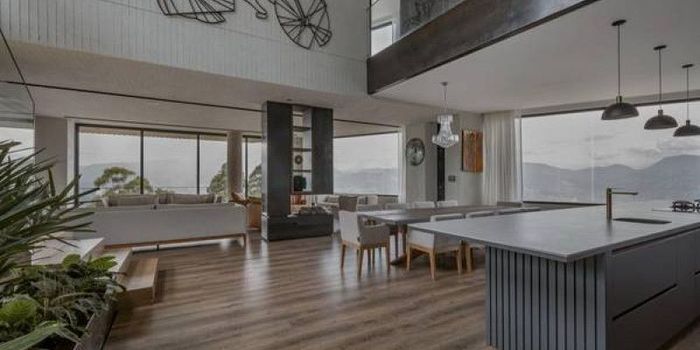 Exclusiva casa en El Poblado de 752 m2 con espectacular vista a Medellín. Tiene 702 m2 en interior + 47 m2 de construcción exterior en 2 niveles y 1 subnivel. Su diseño contemporáneo y sus acabados en metal, piedra y vidrio, le dan una calidez e iluminación inigualable. Domotización completa y sistema de sonido. La casa cuenta con doble altura en el nivel del medio por el cual se ingresa; con hall de acceso, cocina abierta, comedor, salón y chimenea, con un balcón acogedor y una vista increíble. Baño social, zona de ropas, alacena y cuarto útil. En el nivel superior cuenta con 4 habitaciones con baño, sala de estar y cuarto de seguridad. Tres habitaciones cuentan con vestier y balcón. En el nivel inferior, tiene gimnasio, oficina, turco, terraza BBQ y fire pit, piscina con chorro de nado, deck, jardín con juegos infantiles y dos baños sociales. Hay además 2 alcobas de servicio con 1 baño compartido. La casa tiene acceso de ascensor por los 3 niveles, tiene 3 parqueaderos cubiertos, closet de herramientas y cuarto útil. La unidad cuenta con portería 24/7, todos los servicios de EPM y la casa tiene paneles solares. Ubicado en los Balsos, cuenta con salida a las palmas, los Balsos y el Tesoro. Está a 15 minutos del Club Campestre, Country Club, las Palmas, túnel de oriente, la 34 y la Inferior. Cerca al Tesoro, Santa Fe, Complex de los Balsos. Ideal para quien busca amplitud, exclusividad y tranquilidad, en el corazón de la ciudad y con una vista espectacular.