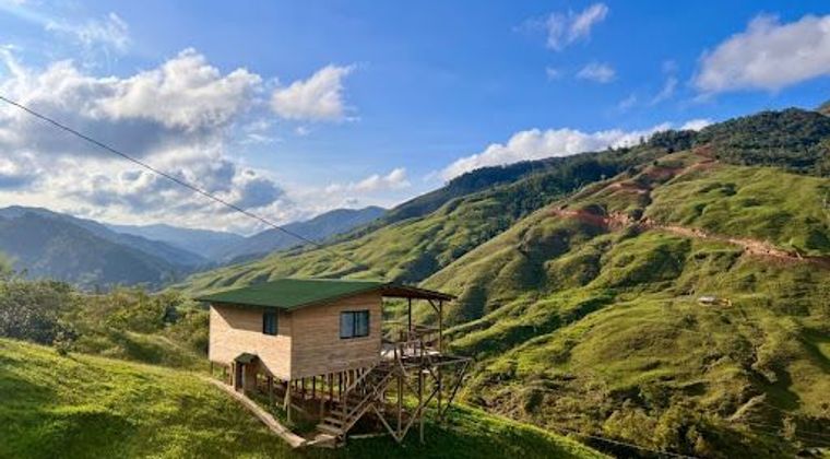 Venta de casa-lote Alejandria - Antioquia . Vereda san miguel . A 10 kilómetros del parque ppal . 25 - 30 minutos de recorrido por via destapada , apta para campero moto . Distancia de la carretera veredal a la casa ppal 200 mts aprox . Area entre 7 y 8 hectareas ,La propiedad cuenta con su casa ppal , tiene 2 habitaciones amplias y un baño , y un tercer espacio de cocina - comedor amplio e independiente .Ademas cuenta con 3 cabañas en madera inmunizada .Las primeras 2 cabañas estan diseñadas para una pareja cada una , con un area de 45 mts cada una , y estan dotadas con su habitación , un baño amplio ,esta dotada con los utensilios basicos para cocinar , ademas de una nevera mediana, ducha de agua caliente. cocina con meson , y fogon de 2 puestos integrado , Tienen cada una su espacio deck con jacuzzi en fibra de vidrio .climatizado , burbujas , y luz multicolor 447-12209