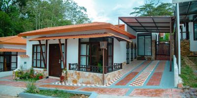 VENDEMOS CASA CAMPESTRE VALLE DE SAN JOSÉ, SANTANDER, CONJUNTO. En el tranquilo y bonito municipio del Valle de San José en Santander, se encuentra el Condominio El Cafetal. Constituido por 90 unidades de vivienda. El conjunto tiene en su zona social, piscina, juegos infantiles y zonas verdes. Su seguridad es 24 horas. Sobre un lote de 200 metros cuadrados, se encuentra construida la casa de una sola planta con un área construida de 170 metros cuadrados, con cubierta en machimbre y teja de barro. Su distribución está conformada por sala, comedor, cocina integral, 2 baños, patio y 2 parqueaderos.