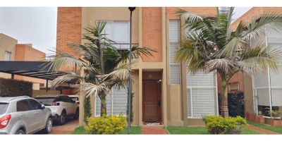 Casa en condominio Cajicá. Casa de dos plantas ubicada en un lote de 235 M2, la casa cuenta con un área de 220 M2 configurados así: En el primer piso: sala con persianas de lujo y domotizadas y chimenea a gas, 1 estudio/oficina, 1 baño para visitantes, cocina abierta hacia el comedor, un mueble de bar, cuarto de lavandería, 1 habitación de servicio y un patio con cocina exterior que cuenta con BBQ, horno para pizzas, lavaplatos, estufa, nevera para vinos y una sala exterior adjunta con muebles empotrados, todo cubierto con tejas traslucidas y pérgolas en madera que dan terminación al espacio (Esta área cubierta no se cuenta dentro de los 220 mts de construcción). En el segundo piso: una sala de tv y 3 habitaciones cada una con baño, clóset, blackouts y persianas de lujo, la Alcoba principal con baño, Walk in clóset y balcón. La casa cuenta con parqueadero para tres carros (dos cubiertos y uno descubierto). El conjunto cuenta con Porteria 24 horas, circuito cerrado de televisión, un club House compuesto por: gimnasio, salón comunal con cocineta, baños para hombres y mujeres, piscina, parqueaderos para visitantes, cancha de fútbol, cancha de tenis, parque infantil y senderos peatonales. No. *******