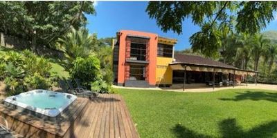 Casa para la venta en el suroeste de Antioquia sector loma grande antes de la Siria, en parcelación cuenta con un área total de 7.000m2 y un área construida de 760m2 distribuidos en la casa principal 5 habitaciones, 4 baños, baño social, cocina abierta con isla, sala comedor amplia, pérgola, jacuzzi, zona de ropas, casa mayordomo 1 habitación, 1 baños, sala comedor, cocineta adicional tiene habitación para el conductor completa con baño, amplias zonas verdes excelente vista al cerro tusa, vigilancia 24/7, muy buena oportunidad en el sector.
