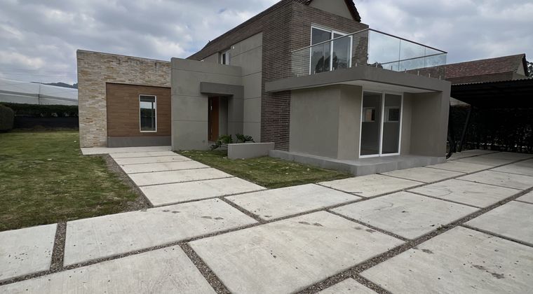 OFERTA ESPECIAL VENDO CASA PARA ESTRENAR EN CONJUNTO CAMPESTRE DE CHIA $2.200.000.000 Área 976 Mts2 Área Construida 328 Mts2. 2 niveles; PRIMER NIVEL: Salan con chimenea, comedor, estudio con baño, cocina integral americana, zona de lavandería,. SEGUNDO NIVEL: 3 alcobas, cada una con su baño privado, terraza o balcón, alcoba principal con una amplia terraza, baño y Walking Close, hall con pequeña terraza. Garaje cubierto. En el conjunto solo hay 8 casas, tiene vigilancia por cámaras.