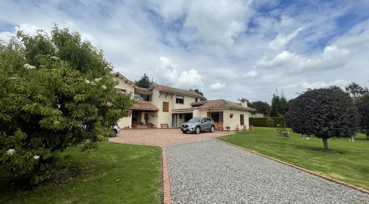 Venta de espectacular casa campestre en Guaymaral, ubicada en un lote amplio, rodeada de naturaleza y con excelente iluminación en todas sus fachadas, ideal como retiro exclusivo a las afueras de Bogotá. La casa se desarrolla en dos niveles, concentrando en el segundo nivel todas las habitaciones: cuatro alcobas, donde la principal cuenta con baño con jacuzzi, vestier y walk-in closet, dos habitaciones comparten baño y una habitación adicional tiene baño privado con tina, además de hall de alcobas. En el primer nivel se encuentran el cuarto de juegos con baño, sala y comedor independientes, estudio con chimenea, cocina con isla y comedor auxiliar, depósito, cuarto y baño de servicio, zona de lavandería y terraza con zona BBQ. Como anexos, dispone de dos garajes cubiertos, cancha de fútbol y casa de mayordomo independiente con sala-comedor, dos habitaciones, baño, cocina y lavandería. Posee seguridad 24 horas. Ubicada en Arboleda de Guaymaral, cerca de Centro Comercial BIMA, Club Campestre Guaymaral y Aeropuerto de Guaymaral.