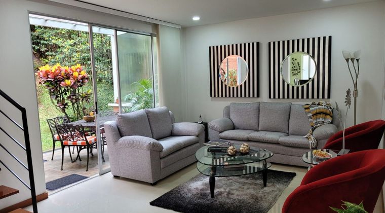 Casa en venta en la unidad residencial Reserva de San Jorge. Ubicada en un lote de 230 metros cuadrados, con 220 metros construidos. La casa tiene 14 años de antigüedad y ha tenido un único dueño. Cuenta con 3 habitaciones, cada una con baño y vestier, además de biblioteca, dos terrazas, dos parqueaderos y dos cuartos útiles. El valor de administración mensual es de 552.874 pesos. La unidad es completa y ofrece piscina climatizada, turco, gimnasio dotado, salón social, sendero ecológico, placa polideportiva y zona infantil. Conformada por un total de 94 casas.