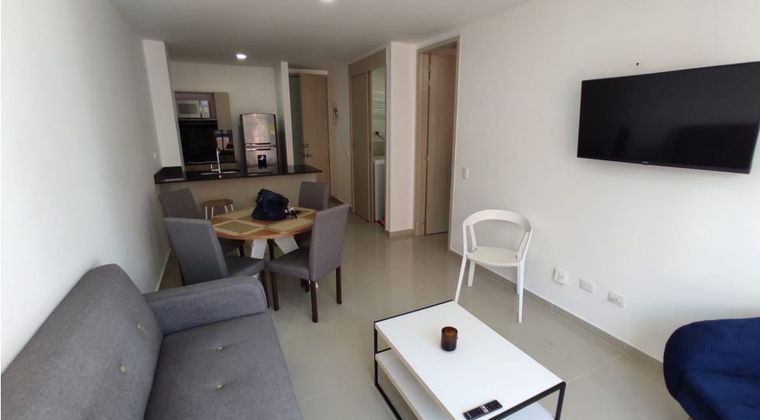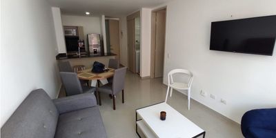 Apartaestudio amoblado y remodelado amplio de 42mtrs2 lado sombra cuenta con sala-comedor, pantry, cocina semi-integral, citofono, una habitación con closets y su baño,pisos en cermica, 2 aires acondicionados, zona de labores con lavadora y calentador de agua. cuenta con doble ascensor, jacuzzi en terraza y gym salón social, parque de niños, parqueadero de visitantes cubierto, porteria/vigilancia 24hrs. Cerca de parques y transporte publico.